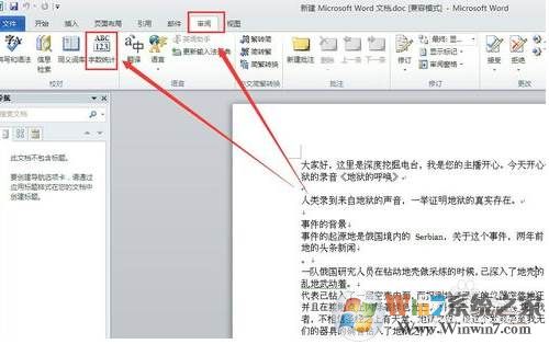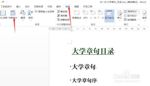 选择【审阅】然后就可以点击字数统计来查看具体字数了。