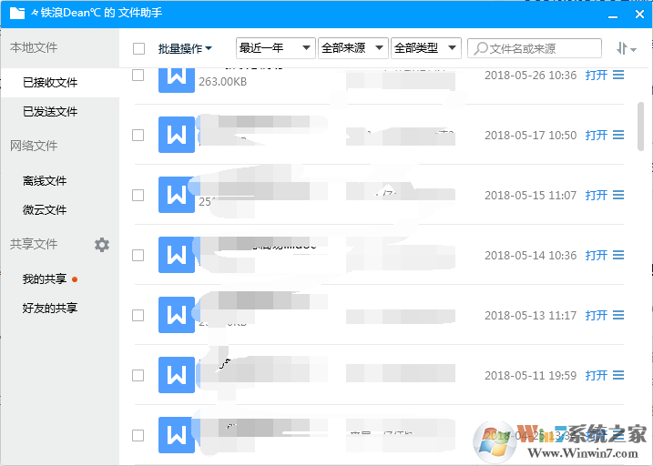 打开QQ文件助手之后,可以选择操作日期,如一年内、三个月内、一个月内来查找你需要的文件