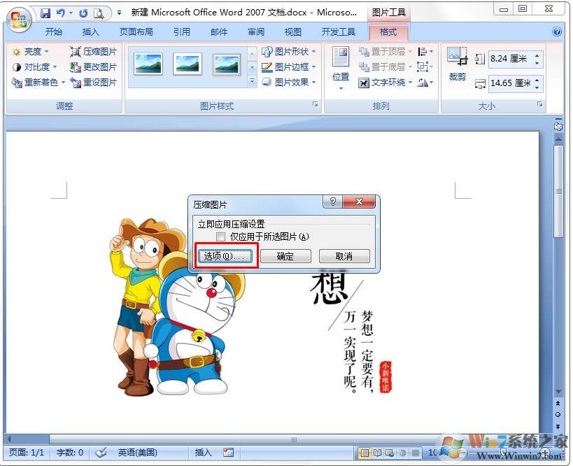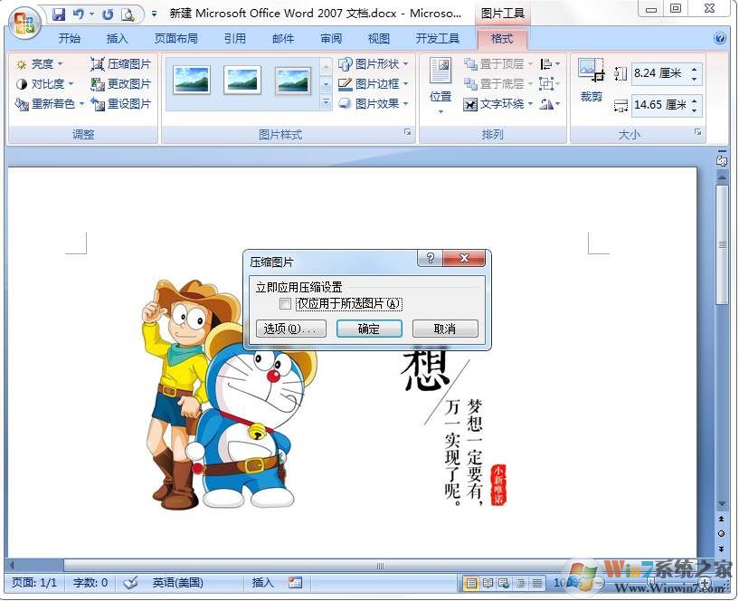 5、如果仅对该图片进行压缩那么勾选 “仅应用于所选图片”,如果想要压缩全部Word文档中的图片,那么不勾选。