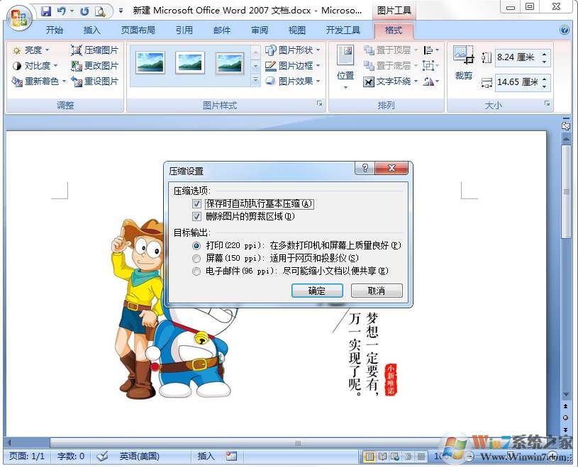 3、出现压缩图片对话框之后,我们再点击一下选项可以设置不同的ppi (每英寸的像素)