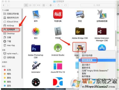 最简单的方法:将应用程序直接拖进废纸篓里也可以达到删除的目的(并且未清空废纸篓的话可以在里面复原。)