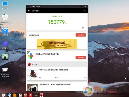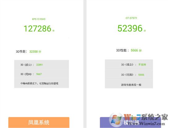 我们在ThinkPadX1设备上,分别用模拟器和凤凰系统运行安兔兔跑分应用作为对比,