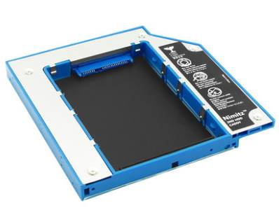 5、把金属片、光驱处壳、固态硬盘都安装到 光驱硬盘托架上。