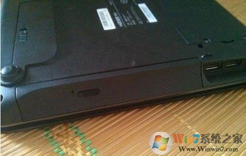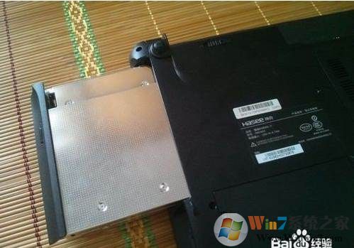 3、使用一些硬卡片工具,把原来的光驱慢慢取出来;