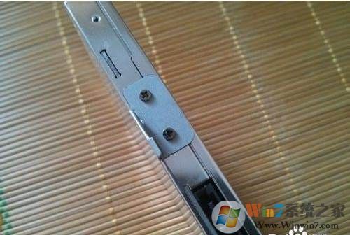 4、螺丝刀拧下光驱两侧的螺丝和金属片,这个要装到硬盘托架上的,不要丢了。光驱的外壳挡板 也要拆下来。