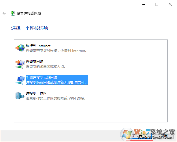 2、选择 手动连接到无线网络,点击 下一步,如下图: