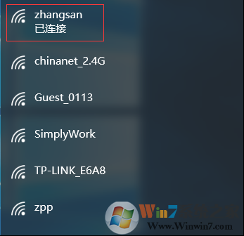 ,在搜索无线网络列表里面显示无线信号已连接,如下图: