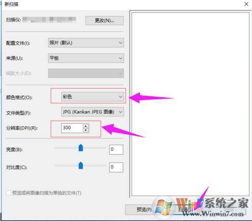 5、这时出现了扫描窗口,我们设置一下图片质量、分辨率等参数;