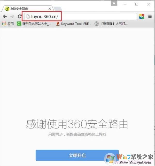 1、打开浏览器,然后在浏览输入:luyou.360.cn 也可以是 192.168.0.1,打开之后会显示“感谢使用360路由器”的界面同,然后点击“立即开启”;