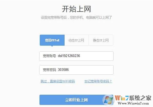 我们输入宽带帐号和密码,点迥立即开始上网就可以成功连接了。