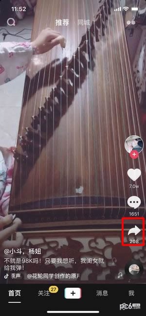 1、首先打开你要合拍的小视频,然后在抖音短视频播放界面点击右侧【分享】按钮;