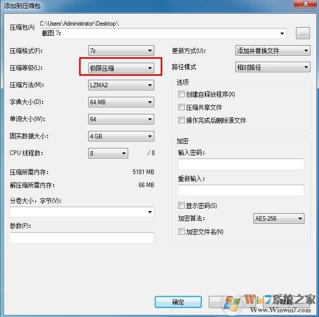 3、在压缩设置界面,压缩等级设置到 极限压缩