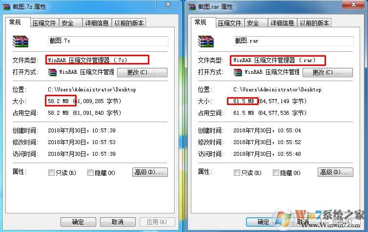 5、压缩完成,以下是7-zip 和WinRAR极限压缩对比,看到了还是7-zip更胜一筹;