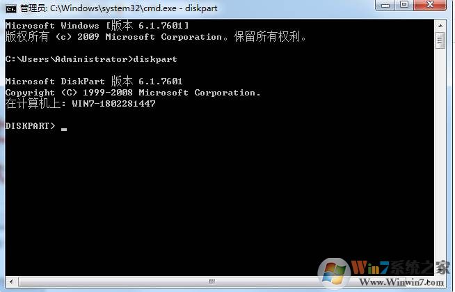 2、敲入diskpart回车