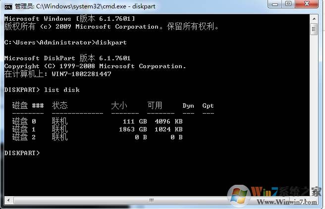 3、先用list disk查看全部磁盘,记下U盘所在的磁盘的编号。如下图所示,我的8G U盘编号是3。