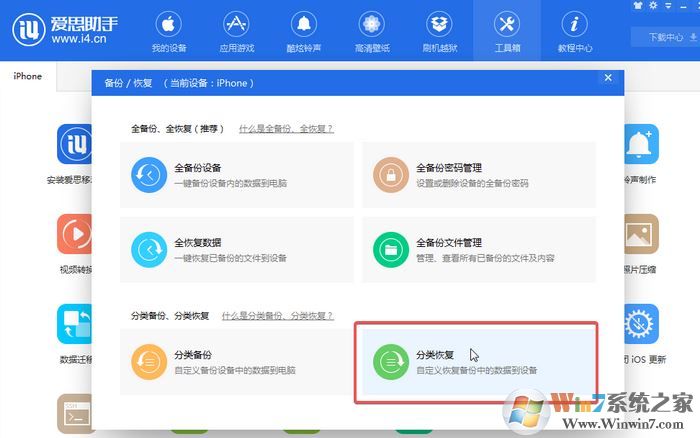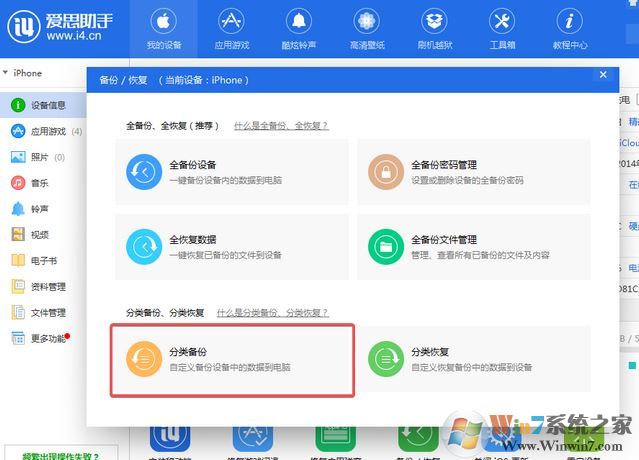 由于从高系统版本降级的低系统版本是不能“保留用户资料刷机”,而且iOS 12全备份设备无法恢复到低版本系统中。所以降级前先在“备份/恢复”中分类备份手机内的数据。如果您在升级前已备份资料则无需重新备份。
