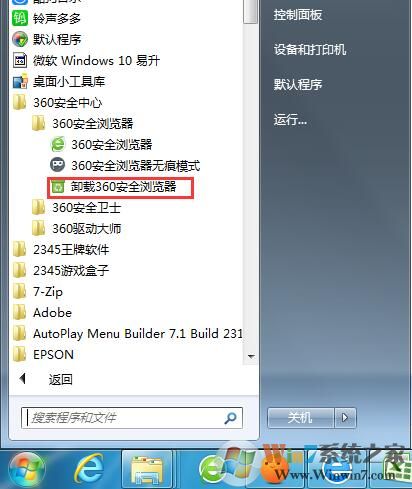 1、在开始菜单中找到,360安全中心——360安全浏览器,卸载360安全浏览器;