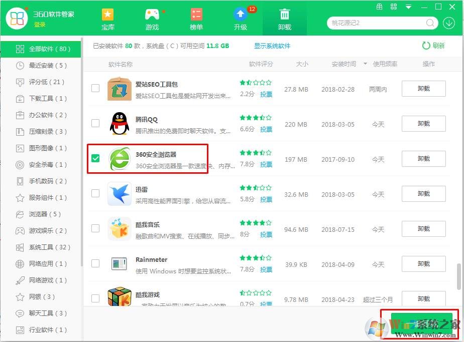 1、这时可以打开360软件管家看看有没有360浏览器,有的话直接卸载;