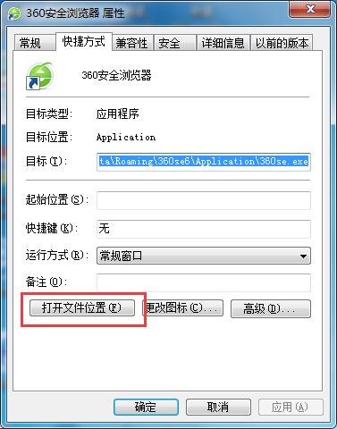 2、如果没有的话,那么也可以强制删除,右键点击 360浏览器图标,——属性,然后打开文件位置
