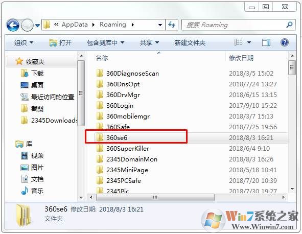 3、找到文件夹后,退回,找到360se文件夹,直接删除。