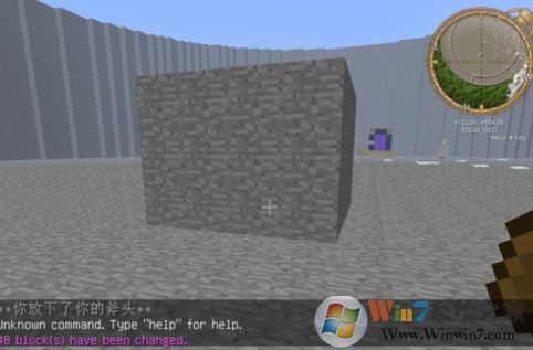 3.输入围墙指令://walls xxx(xxx是方块ID)我输入了//walls 1(石头围墙)