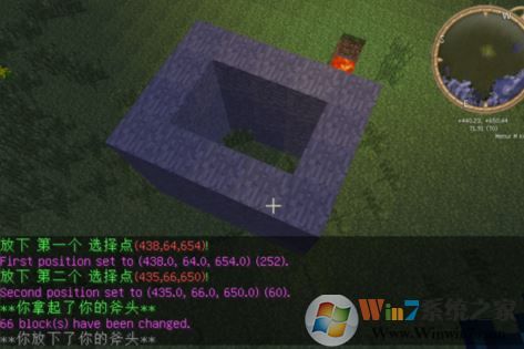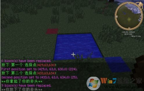 2.输入指令://set xxx(放置xxx,xxx是物品ID,在这里我用//set 1示范)