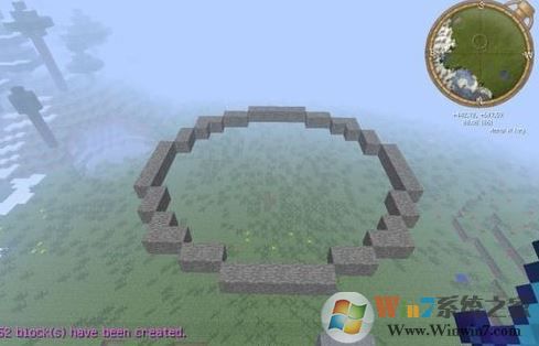 1.输入圆圈指令//hcyl xxx yyy(xxx是物品ID,yyy是半径)我输入了//hcyl 1 5(一个半径为5的石头圆圈),如图所示: