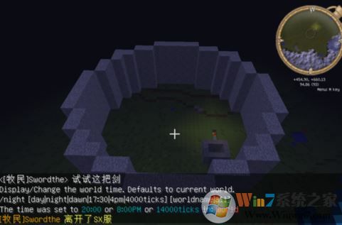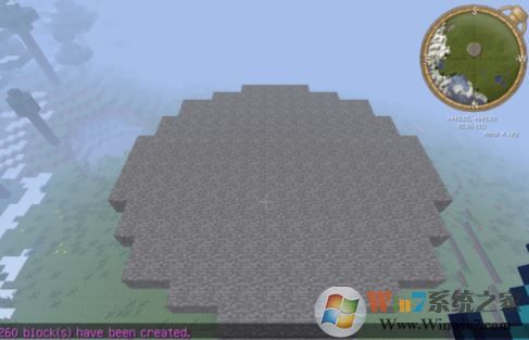 2.输入圆形指令//cyl xxx yyy(xxx是方块ID,yyy是半径)我输入了//cyl 1 5(一个以你为圆心,5为半径的石头圆形),如图所示: