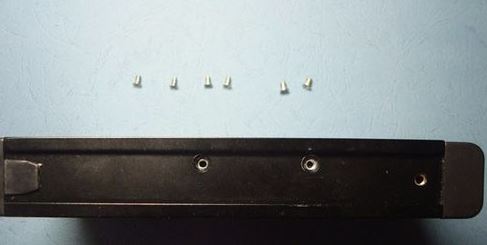 用螺丝起子在硬盘盒上安装螺丝,注意大螺丝要安装在硬盘接口处,小螺丝安装在后面,两侧的螺丝都安装好;