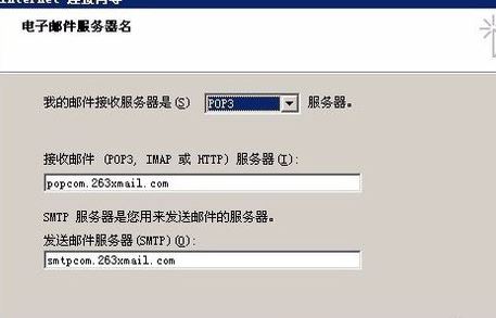 4、接着输入263企业邮箱的收发服务器名称;