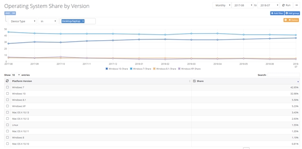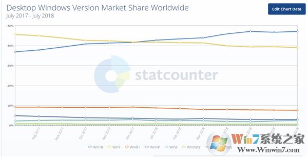 之前有媒体引用了数据分析机构的结果Windows10以47.25%的份额完全超越了Win7系统,按照微软数据在今年5月初全球月活安装量已经超过7个亿。Win10已然成为操作系统中的龙头老大,但是现在我们发现不同的调研机构给出了不同的数据。