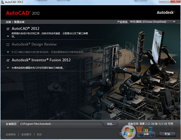 1、首先就是下载你系统位数的CAD2012中文简体完整版(32位系统用32位,64位和下64位的不要弄错)下载来的CAD安装包都会包含注册机。点击“setup.exe”进入安装向导界面,入下图所示: