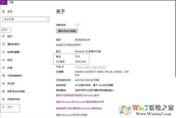 1、查看版本:设置》系统》关于。