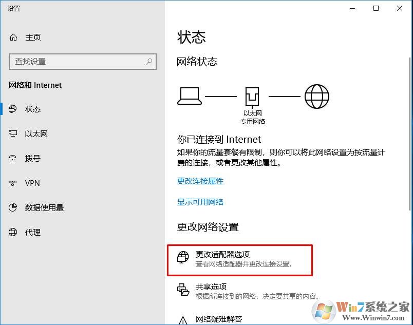 2、然后我们再点击“更改适配器选项”如下图所示: