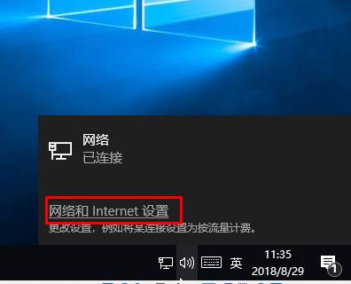 1、首先点击右下角的网络图标,然后进入网络和internet设置;