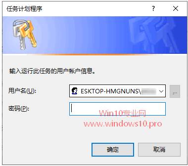 以上设置完毕后,最后点击“确定”,这时会弹出输入运行此任务的用户帐户信息的输入框。如图:
