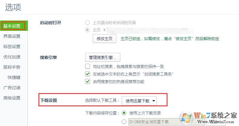 4、在基本设置——下载设置中,选择默认下载工具设置为迅雷下载即可。