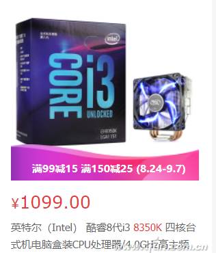 2、第二种情况,就是原本计划购买i5 8400/8500的小伙伴,目前价格在1200元~1300元左右,这时候不妨把眼光放在另一款i3上:i3 8350K,盒装价格1200元,散片价格还能再便宜一些(不过比较少),尤其是游戏性能差别不大,使用Z370主板的话还能超频,性能再提高一个台阶不是问题。