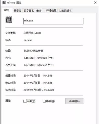 1、首先我们找到运行传奇的主程序Mir.exe(在传奇安装目录下),如果是私服那么就找到登录器,右键点击打开属性;