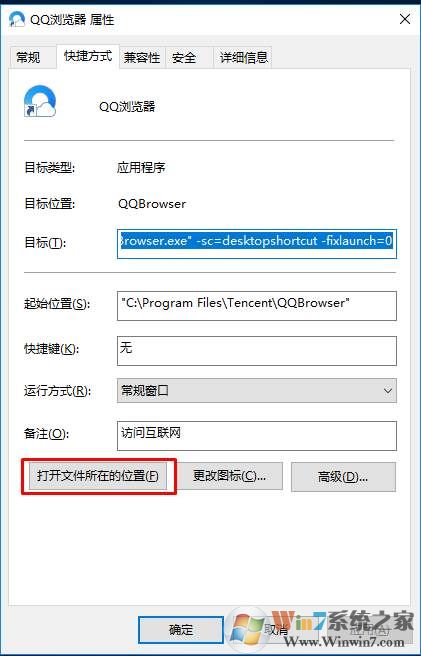 1、找到桌面上的QQ浏览器图标(图标肯定有的,要不你怎么知道有QQ浏览器的),右键属性,打开;