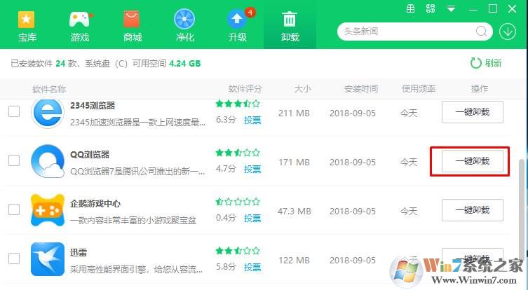 接下去就是卸载过程了,小编不多缀述,要是没有unst.exe文件,也可以使用360软件管家来卸载哦,如下图