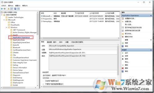 2、打开计划任务后如下图所示。依次展开左侧列表Microsoft---Windows---Application Experience;