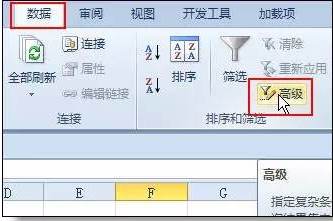 打开“数据”选项卡,可以看到有“高级"命令,它就是高级筛选的入口。不过想真正使用,还需要了解“条件区域"的概念。学习高级筛选就是学习条件区域的设置。
