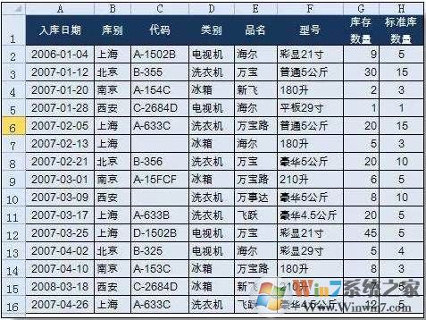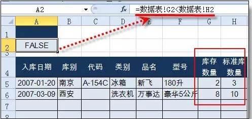 条件10:筛选“库存数量”小于“标准库存数量”的行