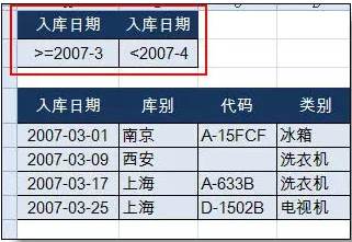 条件3:筛选3月入库商品