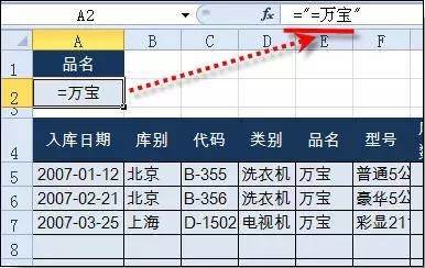 因为表中有“万宝”,也有“万宝路”,所以要用精确筛选。在公式中用 ="=字符" 格式