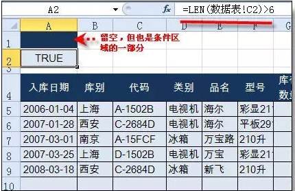 代码长度需要先判断才能筛选,需要用函数才能完成,如果条件中使用函数,标题行需为空(在选取时也要包括它),