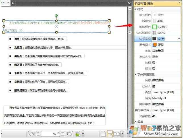 4、若选择的是文本框,那么在属性窗格中可以为整个文本框中的文本进行统一设置,并且能够设置文本的透明度、笔触颜色等其他属性。