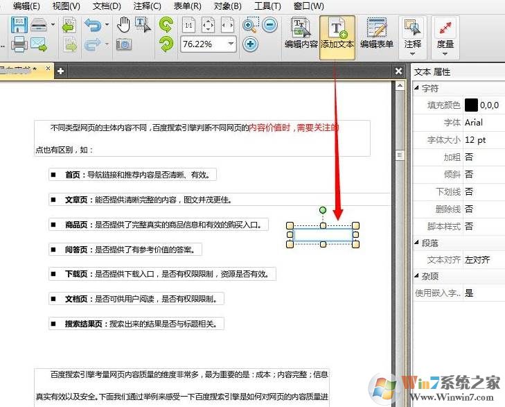 5、添加文本内容的时候要在工具栏上选择添加文本工具,然后在页面点击添加一个文本框,就能输入文本内容了。