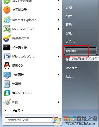 1、点击“开始”按钮,就是一般我们关机的时候、会首先想到去点击的那个按钮;看到“控制面板”。